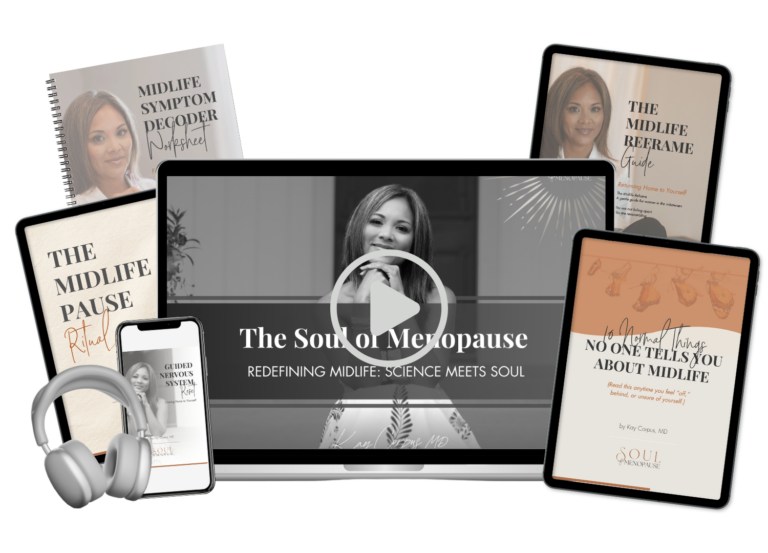 I’m Dr. Kay Corpus, a women’s health expert and menopause doctor specializing in integrative and functional medicine for women in midlife. I believe women deserve midlife medicine that sees the whole person: the scientist and the seeker, the leader and the nurturer, the woman who wants to feel at home in her own skin again.